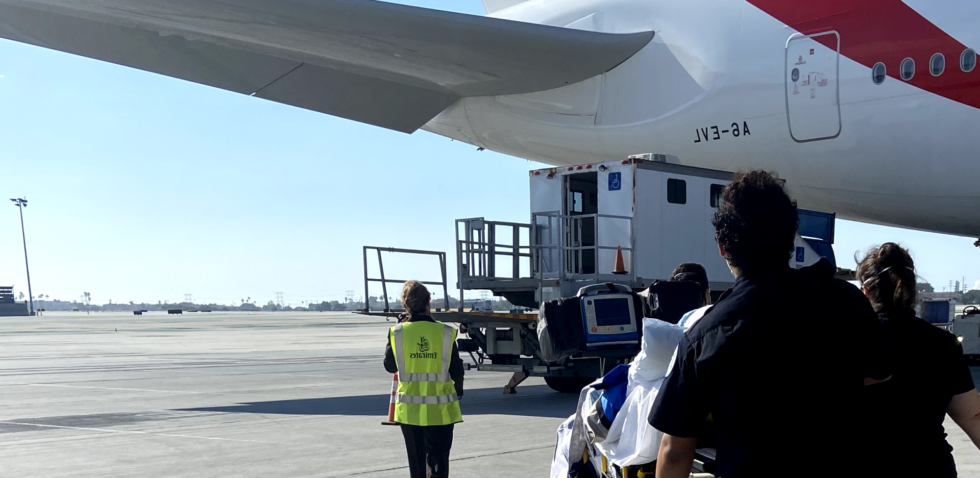 Commercial stretcher means assembling an air ambulance stretcher in a commercial airline with oxygen and medical equipment and medical escorts ..